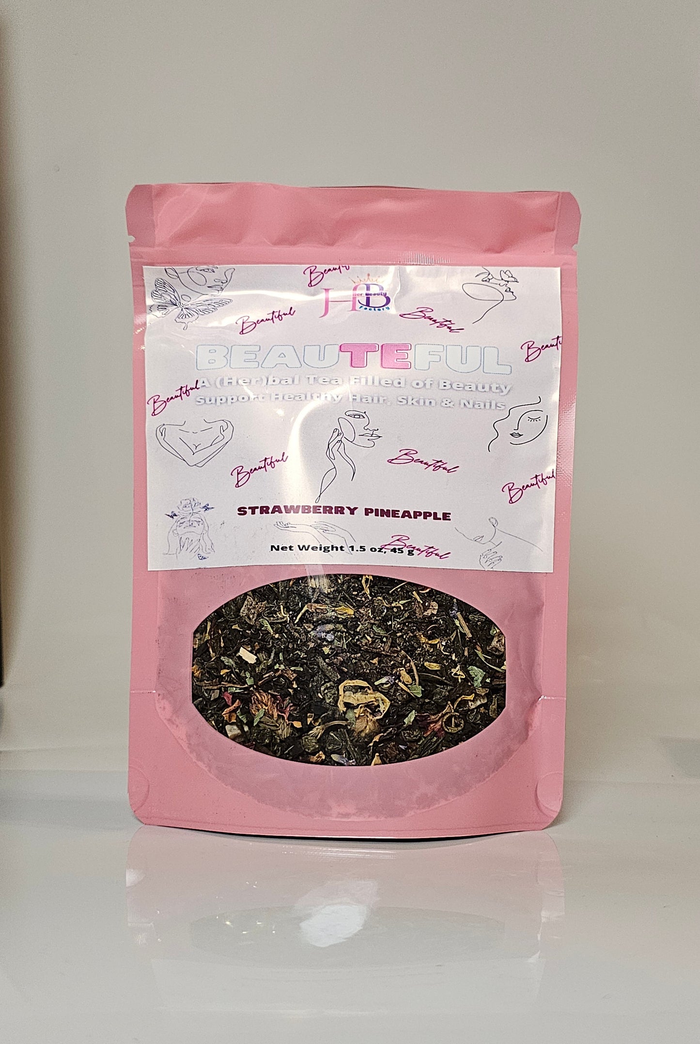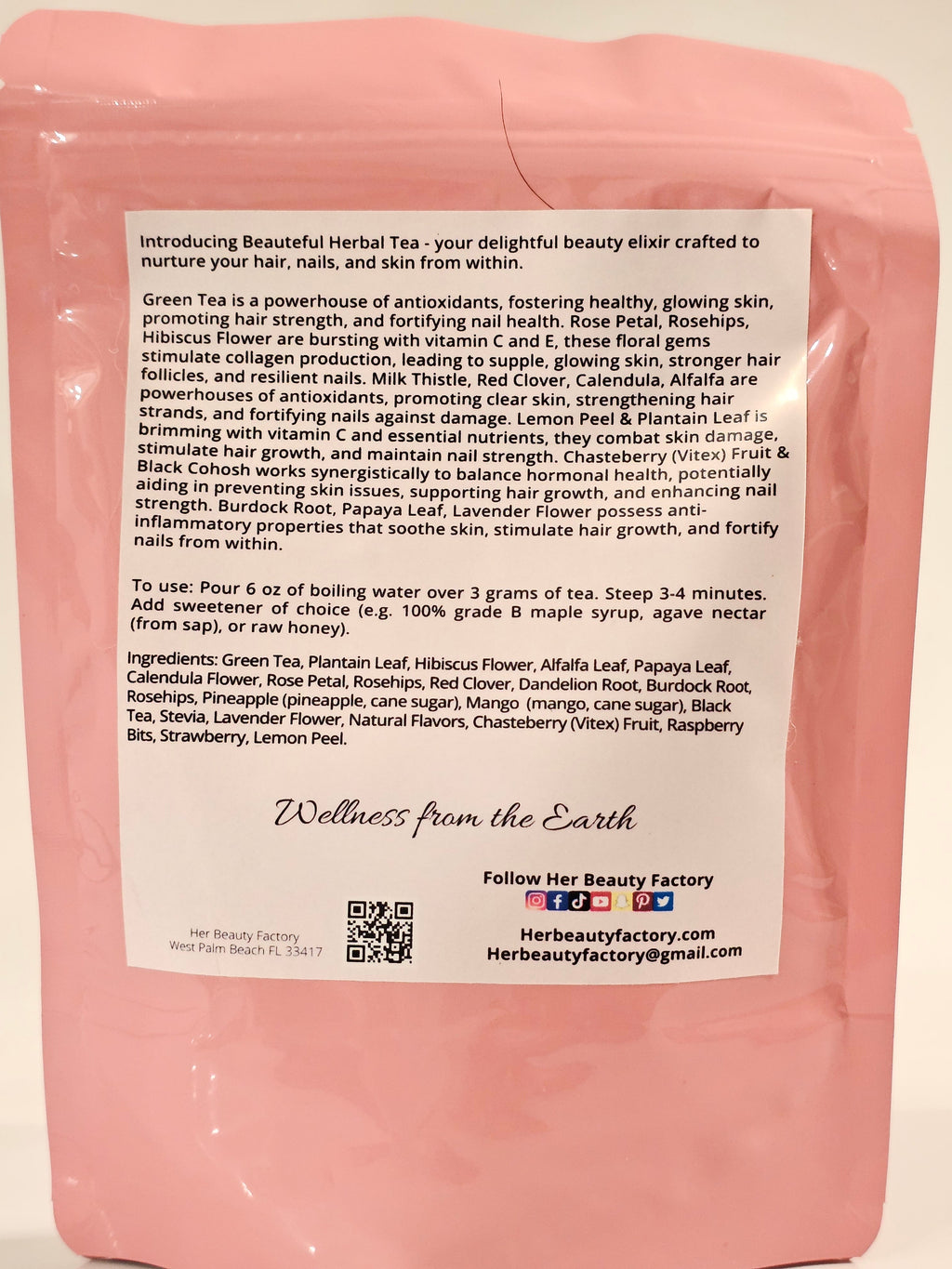 Unveil the secret to naturally radiant beauty with Beauteful Herbal Tea - an exquisite blend crafted to revitalize your hair, nails, and skin. Packed with a symphony of hand-selected botanicals, each ingredient in this elixir plays a vital role in nurturing your beauty from within.