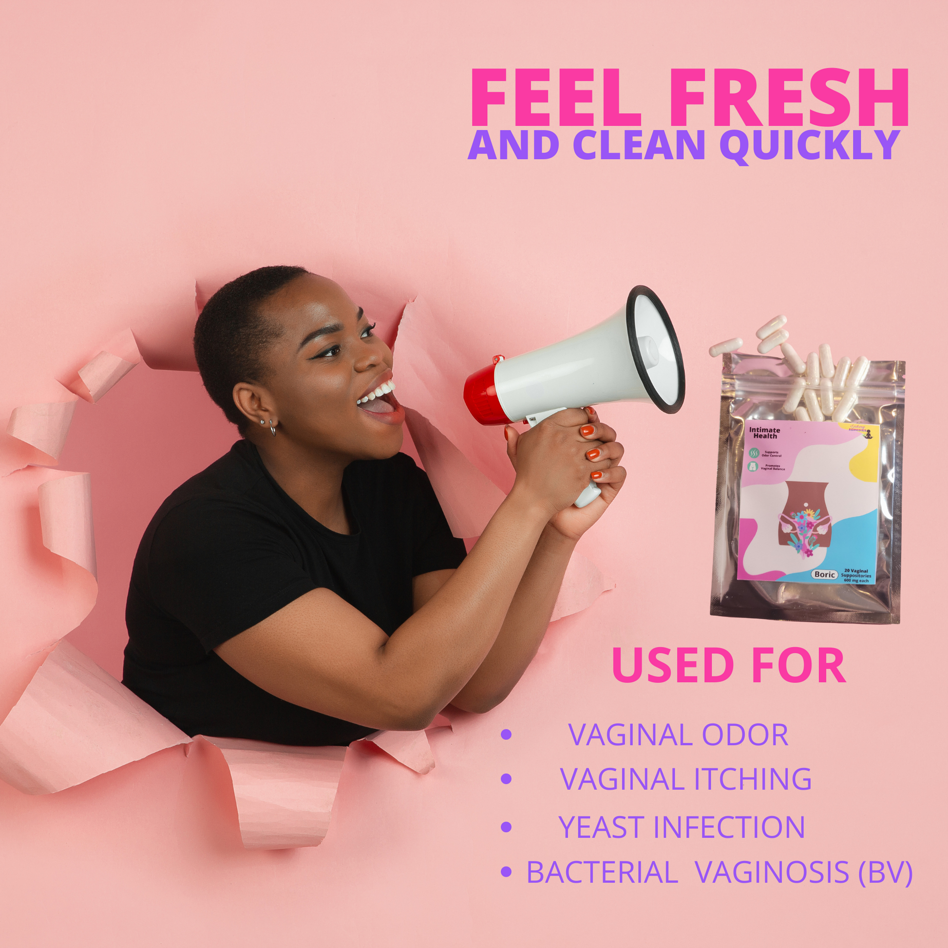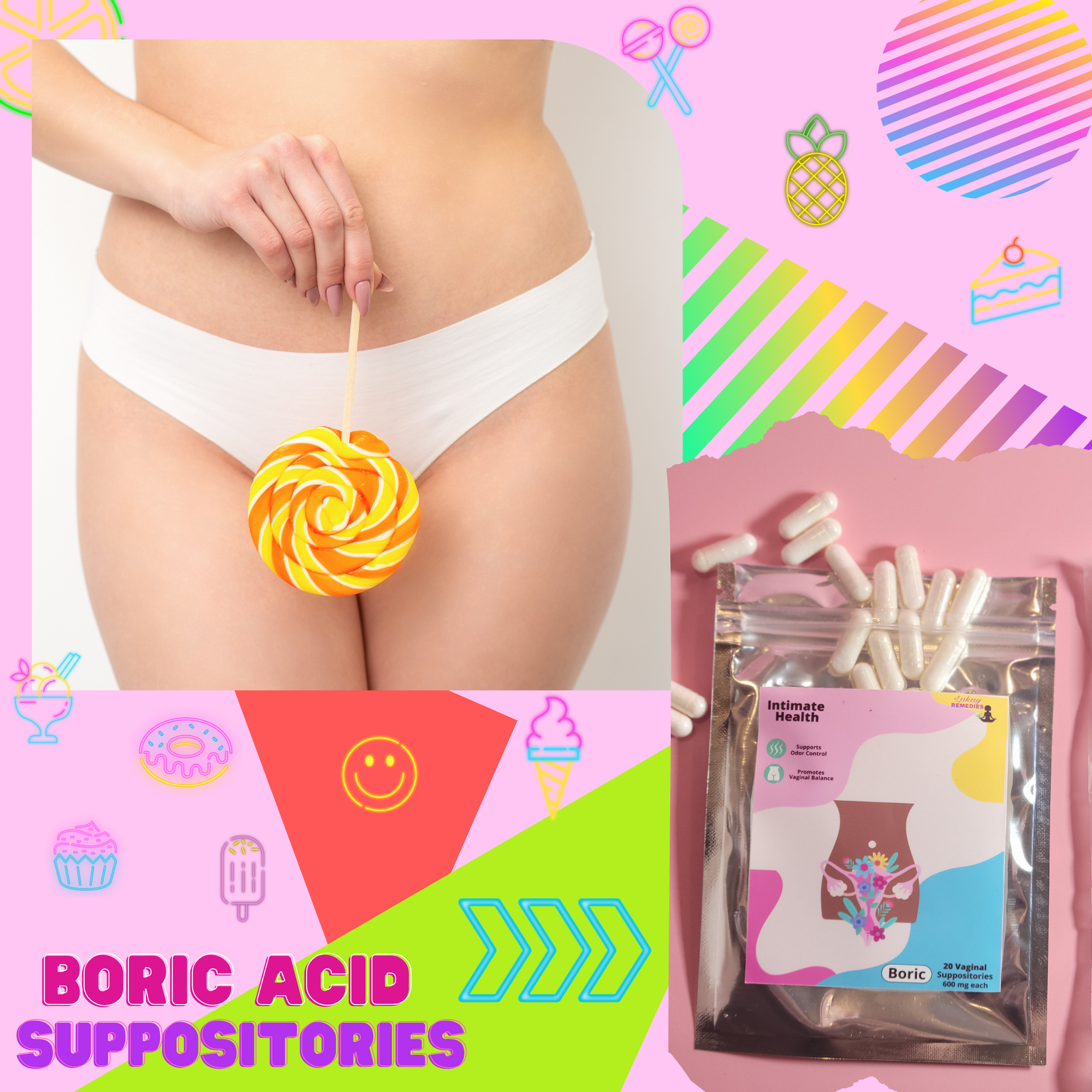 Boric Acid is the holy grail for vaginal health. Don’t let embarrassing vaginal odor and discharge ruin your vacation, your relationship, or your self-confidence. Boric Acid Vaginal Suppositories are your go-to for a safe, effective, and holistic solution when you notice a frustrating or embarrassing vaginal odor.
