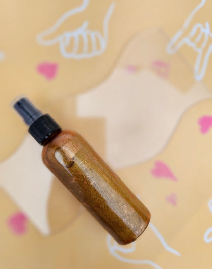 Experience the allure of a lavish bronze body oil, delicately fragranced to moisturize and enhance your skin with a mesmerizing radiance. This smooth, lightweight oil evokes the allure of sun-kissed summer skin, enticing the senses with a delightful vanilla bean aroma. It adorns the skin with golden and bronze shimmers, leaving a luxurious glow.
