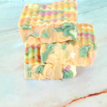 This all-natural soap contains the essential oil blends of Lemon, Orange, Lime, and Sage and nourishing oils with skin benefits. Citrus and Sage Bar Soap is made with olive oil and grapeseed oil for a soft, smooth lather that won't dry your skin. Citrus and Sage Bar Soaps are 100% cruelty-free and gentle. Perfect for washing your face and body! They are even gentle enough for sensitive skin with no synthetic preservative, detergent, fragrance, or foaming agent.