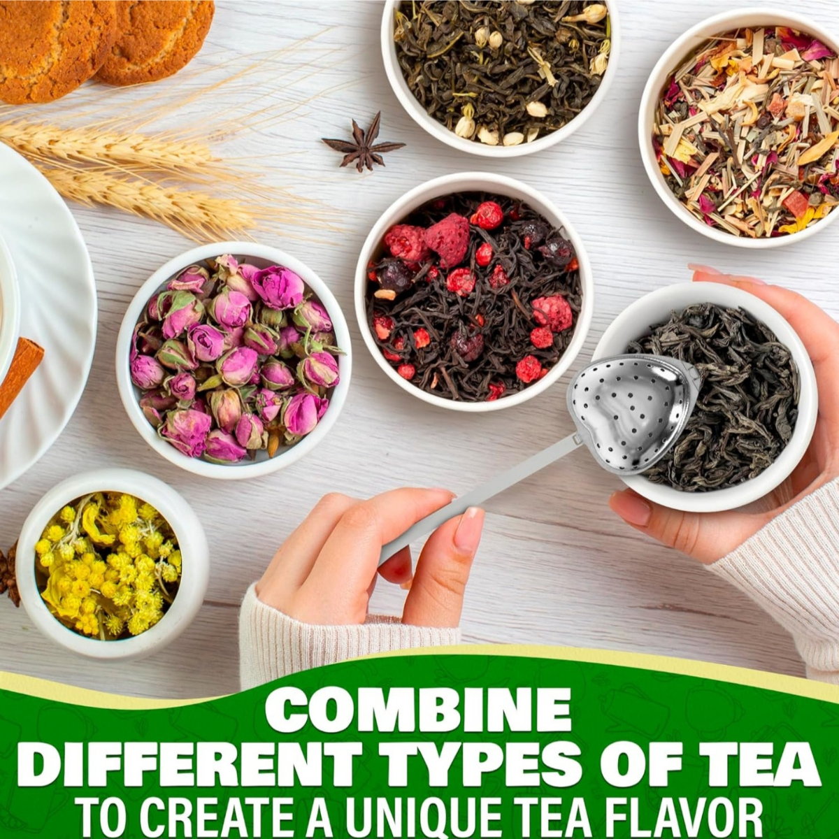 Add a touch of elegance to your tea time with our Heart-Shaped Tea Infuser. Available in silver or gold, this long-handle strainer is perfect for steeping your favorite loose herbal teas. Crafted from high-quality stainless steel, this 5.62-inch steeper is durable, rust-resistant, and built to last, ensuring a delightful and mess-free tea experience.