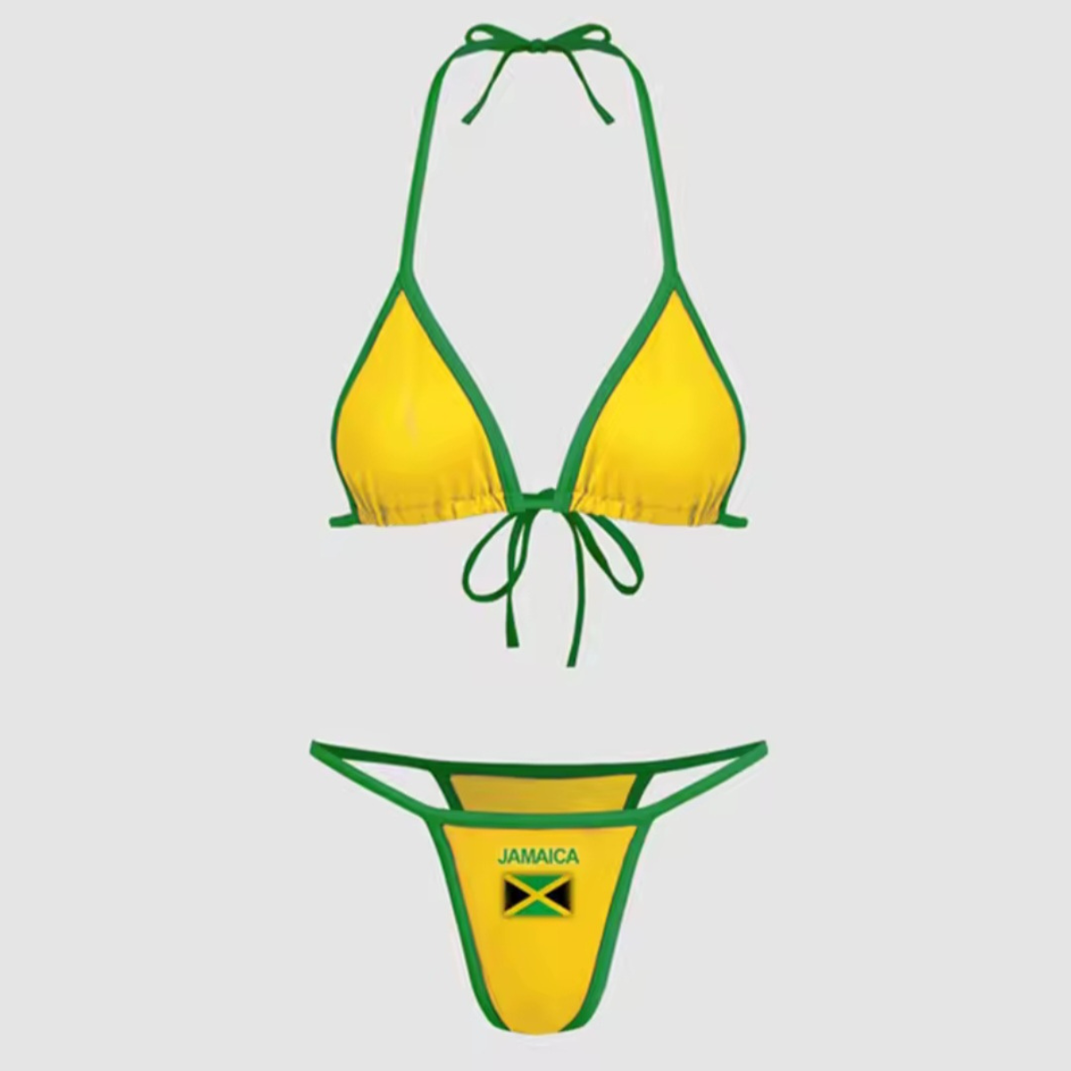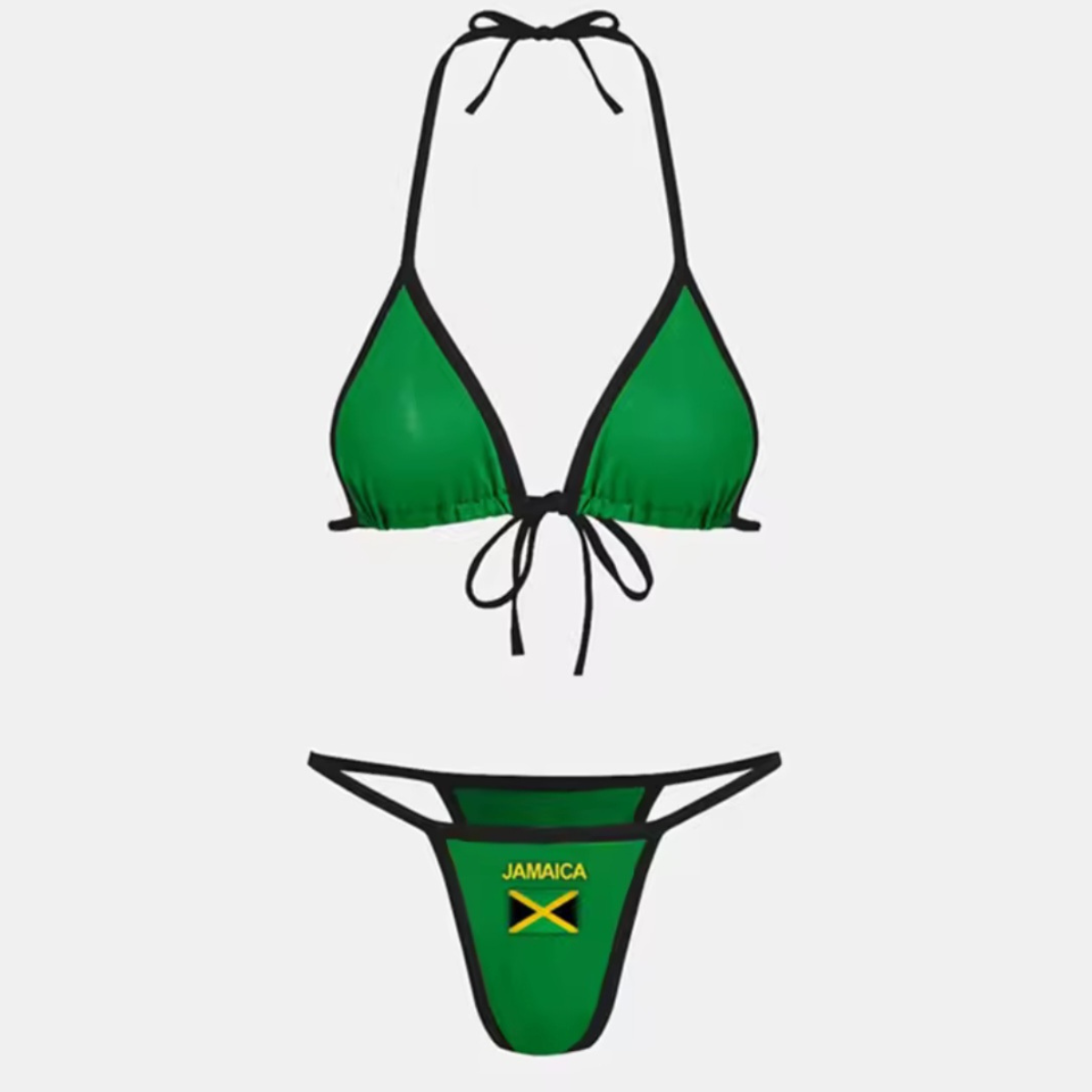 Whether you're soaking up the sun or making waves, this bikini lets you represent Jamaica with style and confidence.