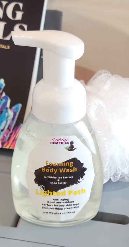 Lighted Path Foaming Body Wash is enriched with White Tea Extract and Shea 50 to add extra skin-loving ingredients. The White Tea Extract and Shea 50 keep the skin looking younger, moisturize, kill germs and bacteria, and soothe skin. The comforting french lavender will help you catch those much-needed zzz's.