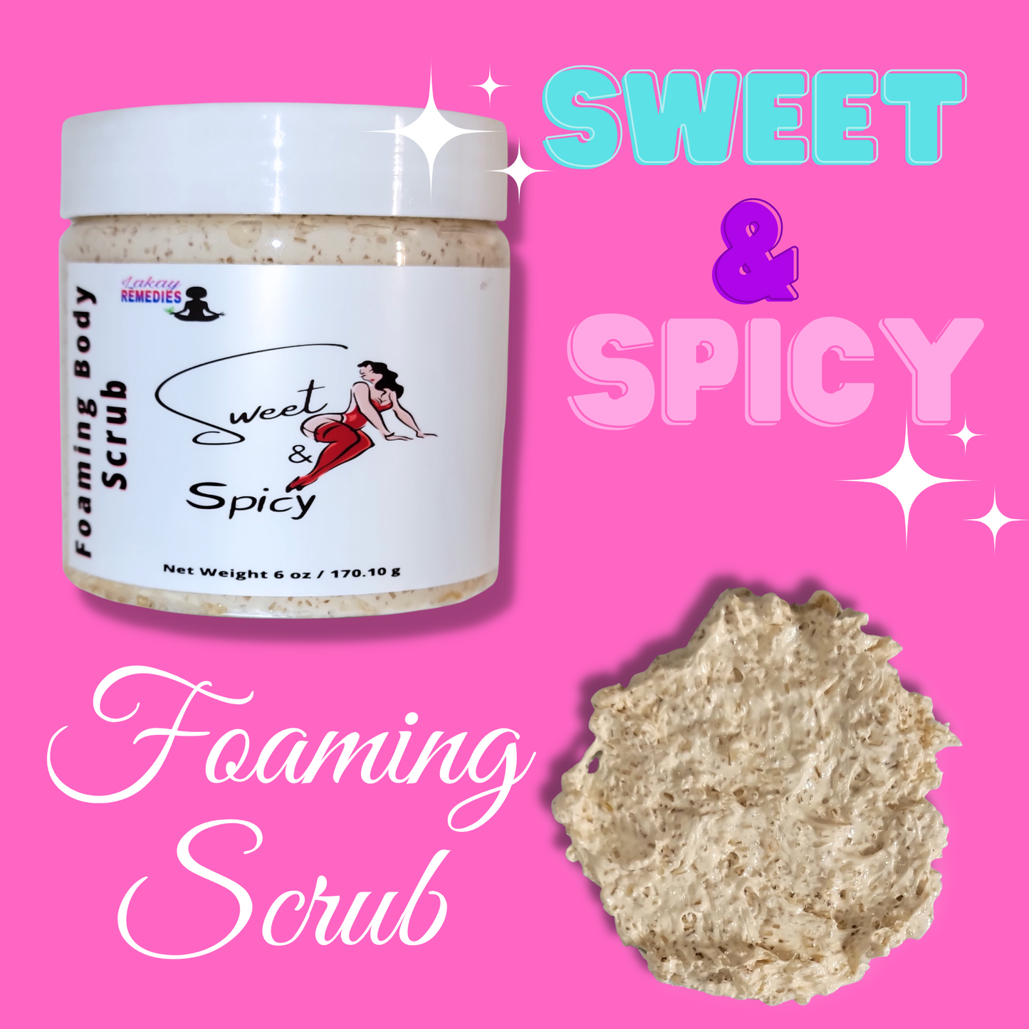 Banish the look of dry, tired skin with this  Sweet & Spicy Foaming Body Scrub. Delectable (but not edible!) notes of ginger, cinnamon, and cardamom is irresistible. It leaves a clean, soft and moisturized feel to skin after effectively and effortlessly exfoliating. With a skin-smoothing blend of golden sugar, Aloe Vera and honey.