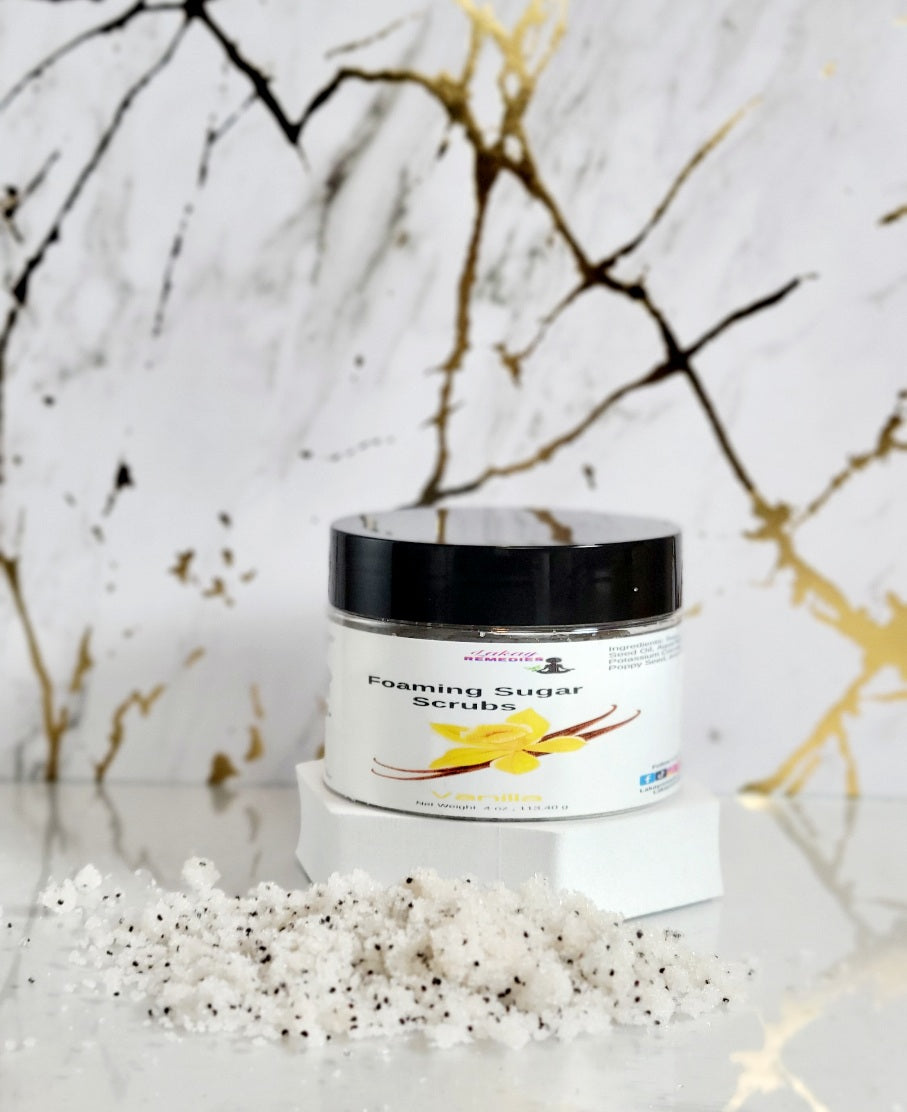 The vanilla fragrance adds a beautiful sweetness to this scrub and creates a calm and comforting atmosphere that invites you to indulge and pamper yourself. Sugar scrubs are our favorite; they feel refreshing on the skin.