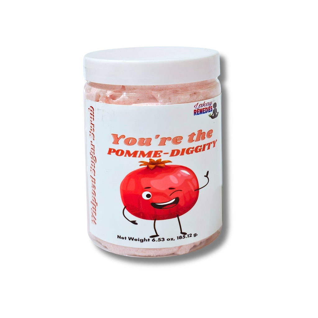 Get ready to pamper yourself with our You're the Pomme-diggity Trio! Dive into a world of luxury with our Whipped Sugar Scrub, Body Lotion, and Body Wash, all infused with the exotic scent of precious pomegranate seeds. Crisp and complex, this fruit is sure to awaken your senses and leave you feeling revitalized and refreshed.